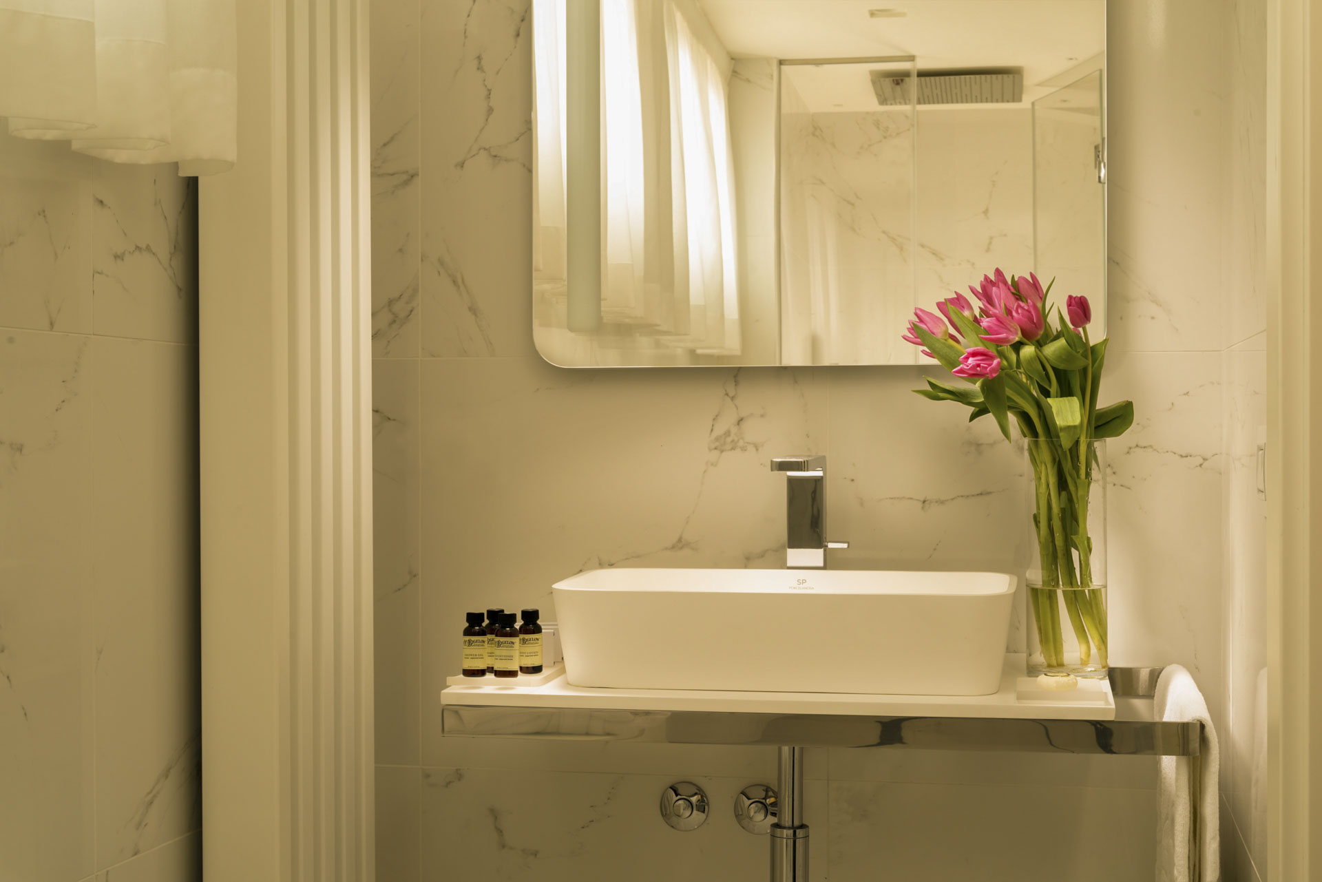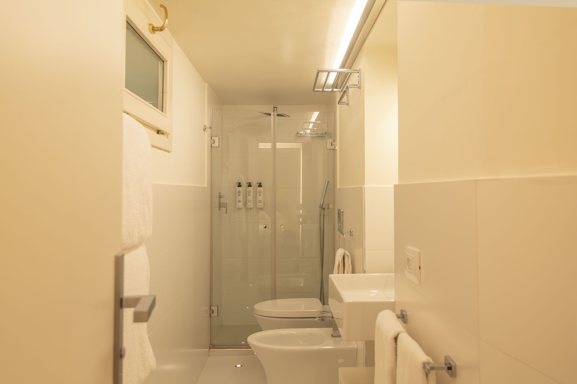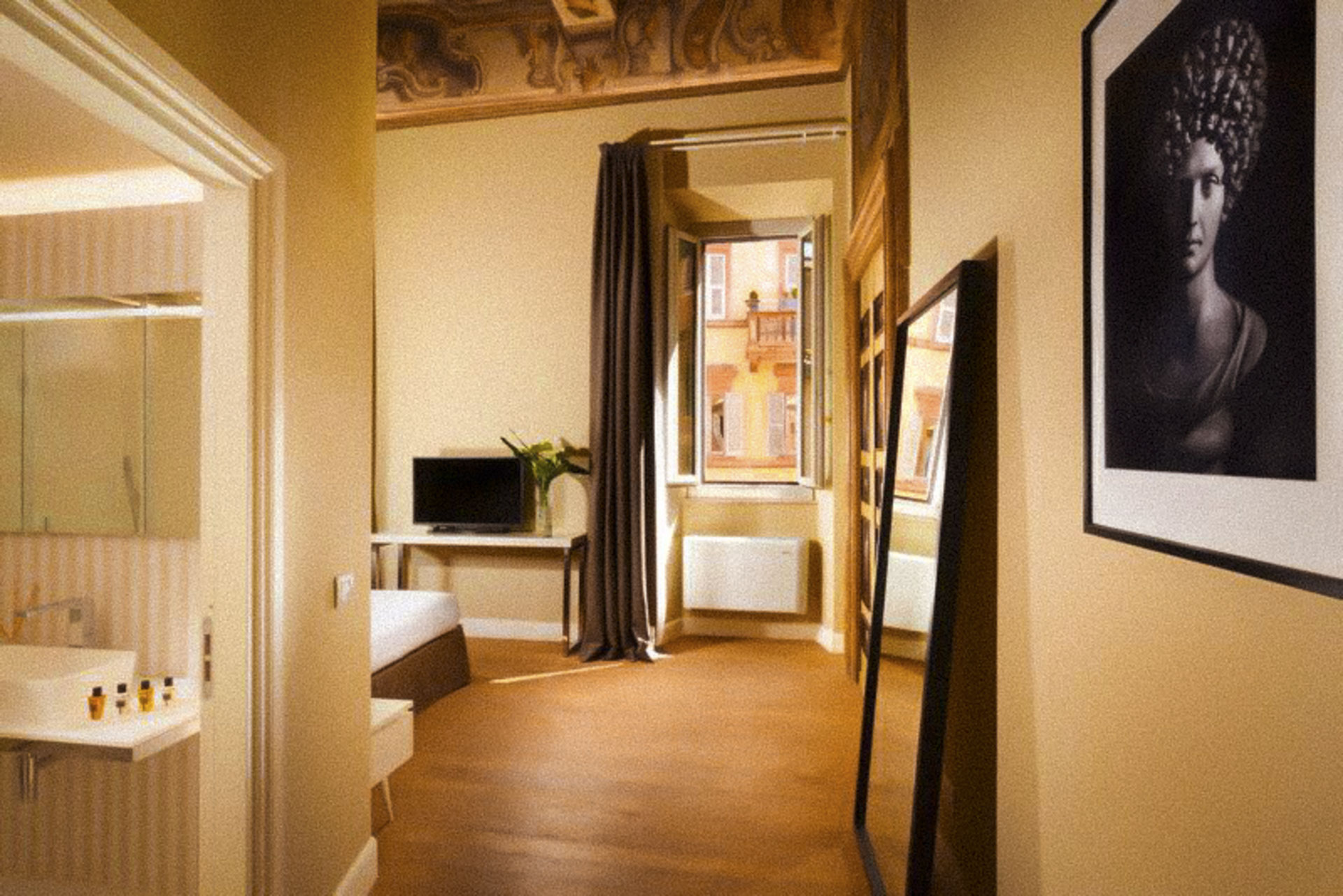 La Camera Economy, la più piccola della struttura, si affaccia sulla corte interna del palazzo ed è ideale per soggiorni brevi di singoli o coppie che desiderano centralità e comfort a prezzi convenienti.