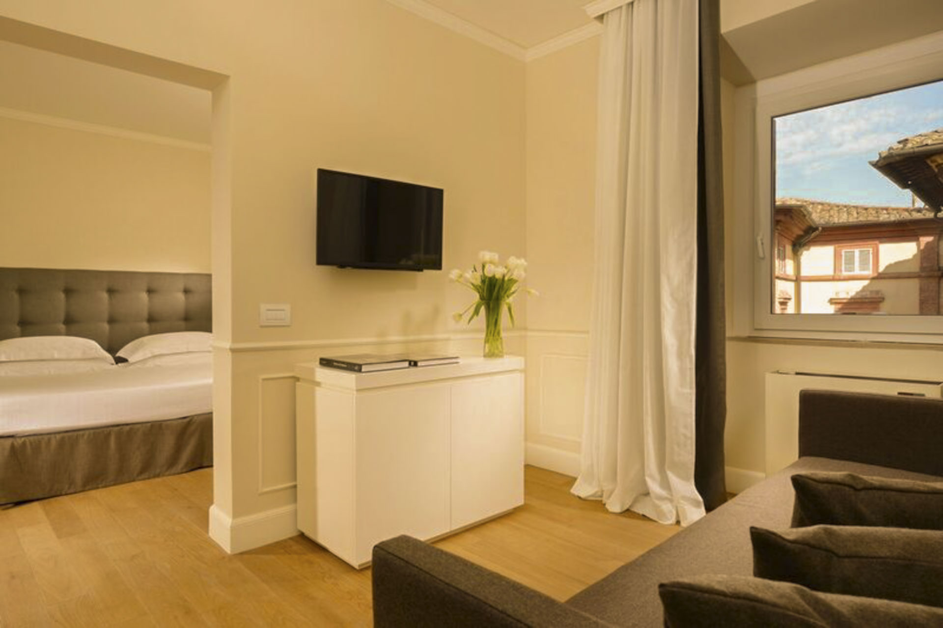 La Junior Suite Familiare de La Locanda della Posta è pensata per chi viaggia in famiglia o per chi desidera ambienti più ampi senza rinunciare all’eleganza di un boutique hotel nel cuore di Perugia.